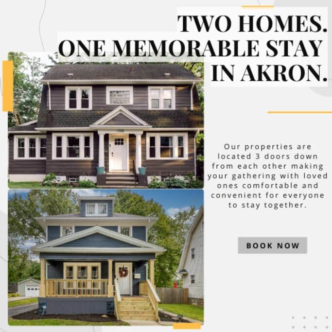 The whole family can enjoy a stylish experience at our two, beautiful renovated homes that are 3 doors down from one another. Our homes are centrally-located to Highland Square, Downtown Akron, and all of the amazing amenities this community has to offer.